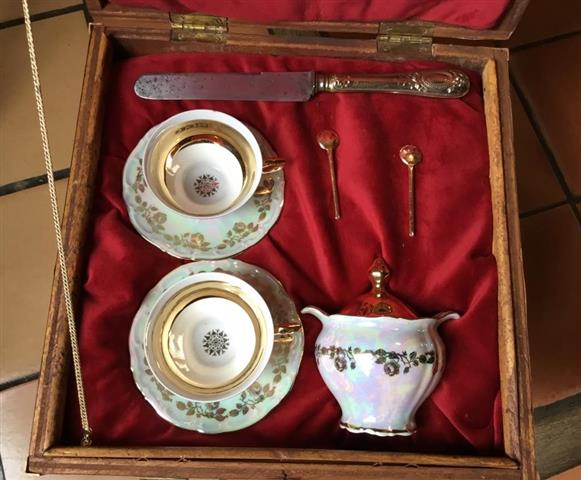 Table de nuit pour la tente Etat Major contenant le service à déjeuner